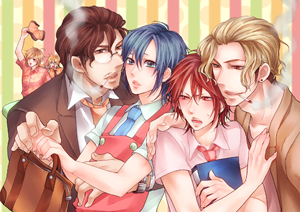 ※完売しました。有難うございました! 2010/5/2 (日)SUPER COMIC CITY19発行 【CVA!】 マスター×カイト カフェパラレルシリーズ再録本 A5/76P+カラー口絵1P/ \800/女性向け・R18指定 ★【BeLOVERS!!(アンソロジー)】【Cafe Vocaloid】【Cafe Vocaloid U】(全て2008年発行)を再録。 Cafe&BarSiGeに「働きたい!」とやってきた青年・カイト。店長の重信が得意業務を訊ねると、満面の笑みで「歌です!」と答えてしまい、不採用確実!? なんとか試用で採ってもらえることになったけれど、予想通りのてんやわんやで…? 表紙描き下ろし、その後漫画16P描き下ろし有り。 その他ボカロ男子が少し出てきますが、当サーク ルのカップリング要素が入っておりますので、ご注意ください。 ※重要なお願い※ 成人指定本のため、18歳以上の方のみご購入頂けます。 イベントでのご購入時には、身分証をご提示頂く可能性がありますので、あらかじめご了承下さいませ。 | |